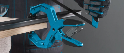 Использую несколько таких струбцин, часто выручают для быстрой фиксации деревянных заготовок. Слишком сильно не зажать, да оно в принципе и не всегда нужно. Но схватить заготовку если работаешь один удобно, а для сильного захвата лучше использовать другой тип струбцин