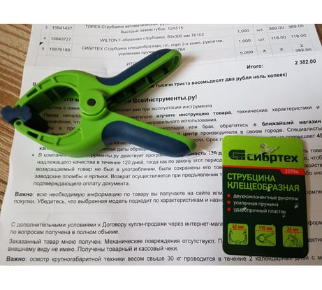 Отзывы о клещеобразной струбцине, пл, корп 2-х комп, рукоятки, усиленная пружина, 1-5/8 СИБРТЕХ 20784