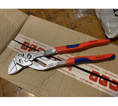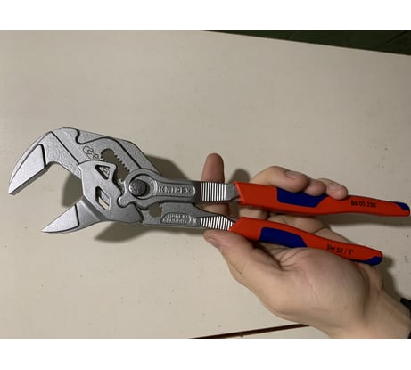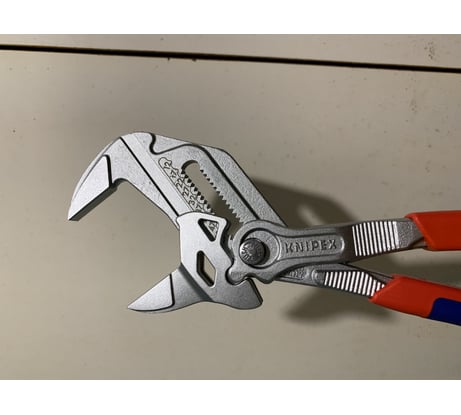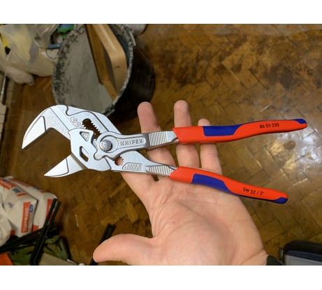 1.Книпекс уже не тот. Магазин заявляет, что сделан ключ в Германии, но я считаю, что в Китае. У меня есть KNIPEX KN-8603250, который был куплен лет 20 назад, так там даже цвет металла и обработка были совсем другие. 2.Цена не адекватная, особенно за ключ с покрытием из хромованадия, а не целиком из него. 3.Даже у нового ключа перестановка позиций происходит с трудом, как шкурку по шкурке возишь, а кнопка клинит с самой покупки при нажатии. У старого ключа было все много лучше! 3.Толщина губок 9мм, а не 8мм, во всяком случае у одной губы. С учетом того, что очень много фиттинга требует узкий ключ толщиной 7-8мм это очень не хорошо. Неужели нельзя было проверить перед описанием товара.
