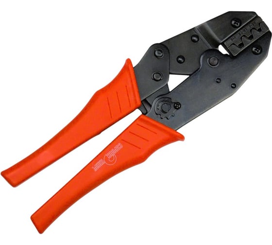 Рукоятки клещей сделаны из прочного пластика с резиновыми вставками, которые предотвращают скольжение рук и увеличивают удобство использования инструмента. Рукоятки также оснащены храповым механизмом, который фиксирует положение клещей во время обжима и автоматически отпускает их после завершения операции. Это снижает нагрузку на руку и позволяет работать с инструментом длительное время без усталости. Длина клещей для зажима контактов составляет 230 мм, а вес - 600 гр. Поставляется в блистере.