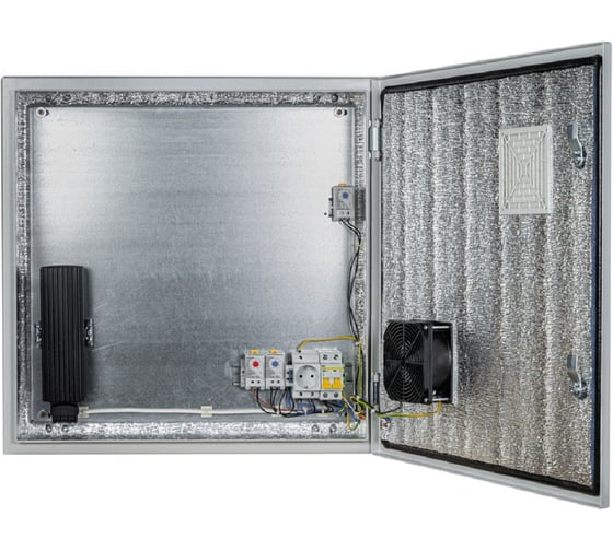 Термошкаф оснащен системой автоматического поддержания заданной температуры и относительной влажности, обеспечивающей безопасную работу размещенного в нём оборудования при температуре окружающего воздуха от -55°С до +50°С со степенью защиты IP54.