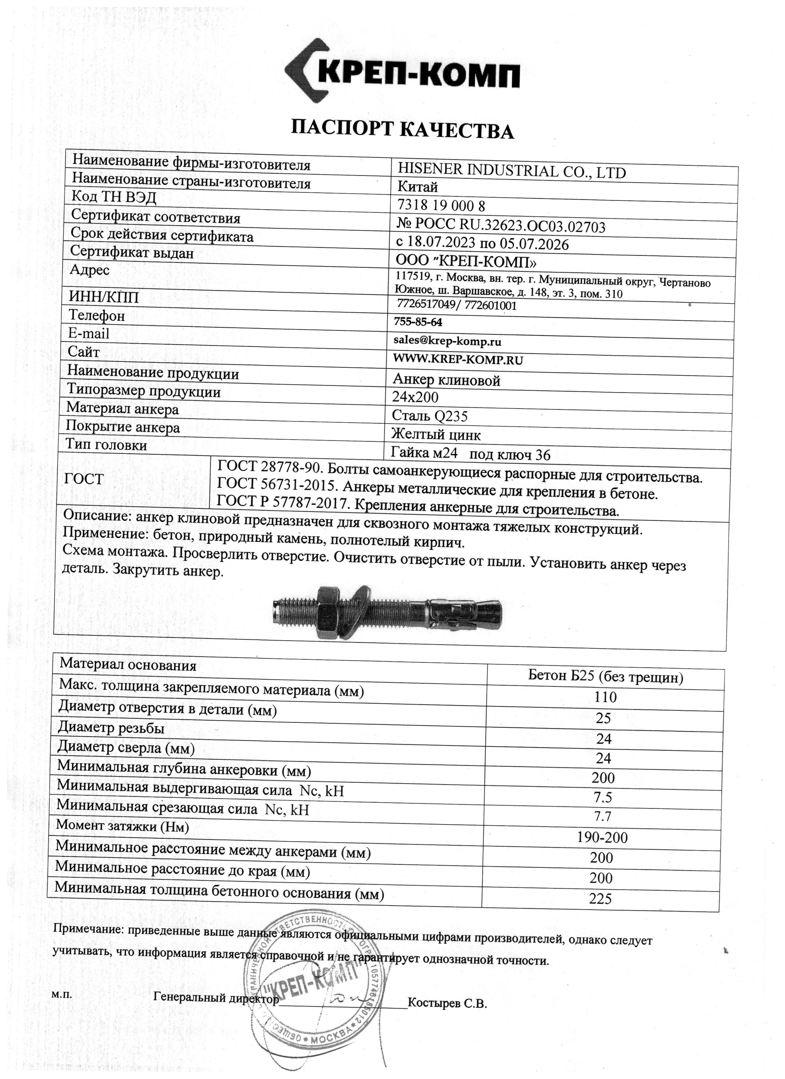 Вопросы и ответы о клиновом анкере КРЕП-КОМП 24x200, 10 шт. желтый цинк ак24200