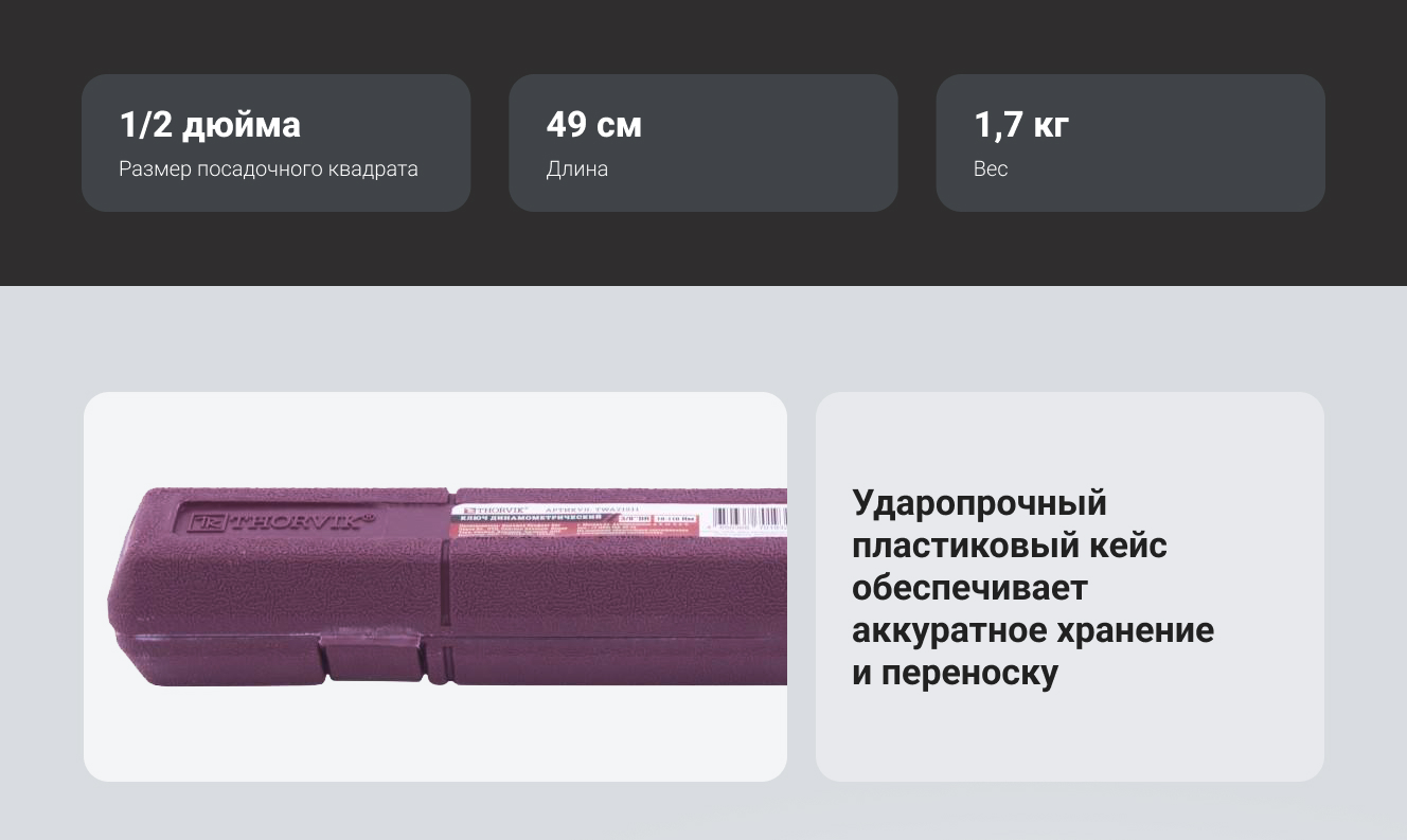 Технические характеристики ключа динамометрический THORVIK 054346