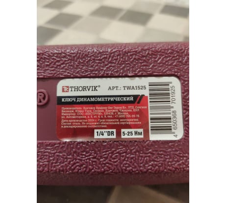 Ключ динамометрический THORVIKTWA TWA1525 1/4DR, 5-25 Нм 054344