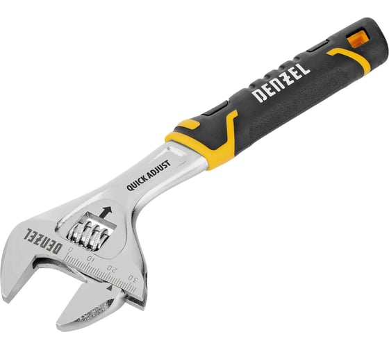 Ключ разводной Denzel 200мм, раскрытие до 33мм, CrV, с быстрым сбросом, кованый, TPR рукоятка 15742