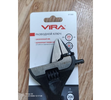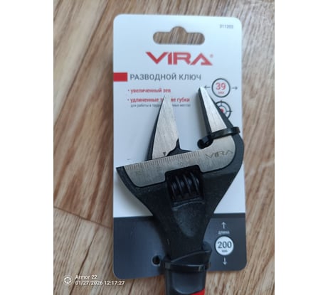 Разводной ключ VIRA с тонким губками, 200 мм 311202