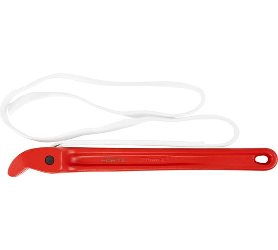 Ремешковый (ременной) ключ HORTZ, предназначен для бережного монтажа и демонтажа деталей, где традиционные гаечные ключи могут быть неэффективны. Инструмент состоит из рукоятки и прочного ремня, создающего надёжный захват. Ремень обхватывает деталь, обеспечивая равномерное распределение давления и предотвращая повреждение поверхности. Рукоятка служит в качестве рычага, ремень затягивается через отверстие в рукоятке в петлю, размер которой регулируется. Это позволяет ключ подходить для разных диаметров труб или иных деталей.