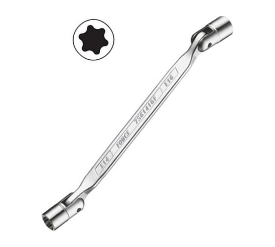 Ключ торцевой двухсторонний FORCE поворотный с 6-лучевой звездой.STAR E22XE24 (колокольчик) 7562224F