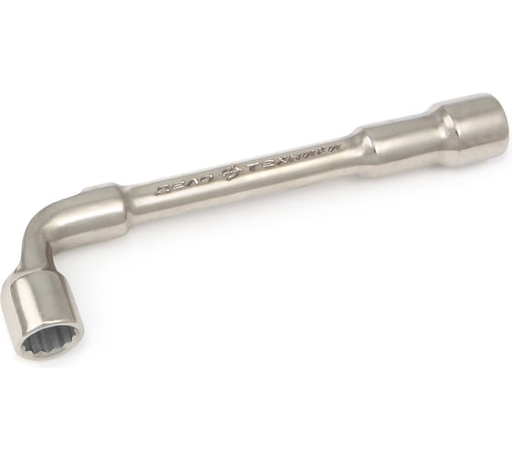 Ключ L-образный сочетает в себе два профиля: 12-гранный на стороне ключа с длинным рычагом и 6-гранный на стороне с коротким рычагом. Ключ имеет сквозное отверстие для работы с крепежом на шпильке.