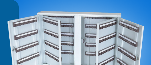 Ключница МЕТКОН КЛ-340 представляет собой металлическую конструкцию габаритами 580х824х130 мм с толщиной стенки 1 мм. Отверстия в задней стенке допускают крепление модели к стене. Есть 34 планки для навешивания 340 комплектов ключей. Вес шкафчика составляет 17 кг. Замки «Cam-Lock» препятствуют несанкционируемому доступу к содержимому ключницы.