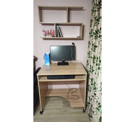 Очень красивая удобная полочка.Собирается легко.Советую.Комплект для сборки полный,даже по одному запасному осталось.
