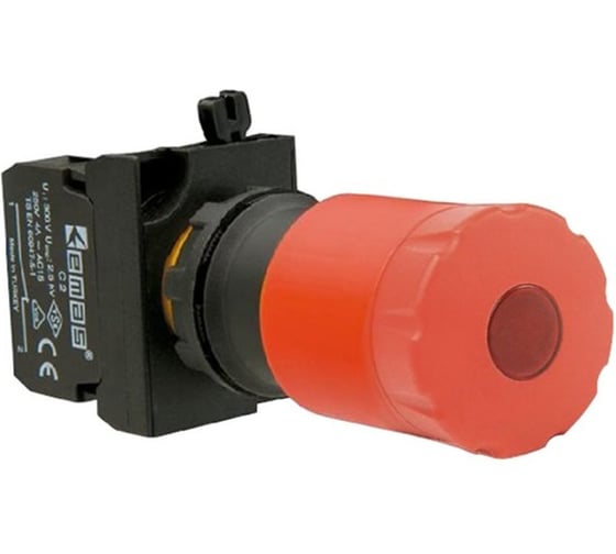Кнопка аварийная EMAS Грибок 30мм (1НО+1НЗ), возврат отжатием, с подсветкой (блок подсветки CB6, красный светодиод, 12-30В AC/DC), серия CP (250В AC, 4А), IP65 CP162ECS30