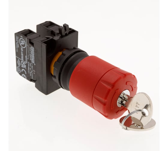 Кнопка аварийная EMAS Грибок 30мм (1НО+1НЗ), возврат поворотом, с ключом, серия CP (250В AC, 4А), IP65 CP102EA30