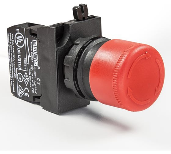 Кнопка аварийная EMAS Грибок 30мм (1НЗ), возврат поворотом, укороченная головка, серия CP (250В AC, 4А), IP65 CP200EK30