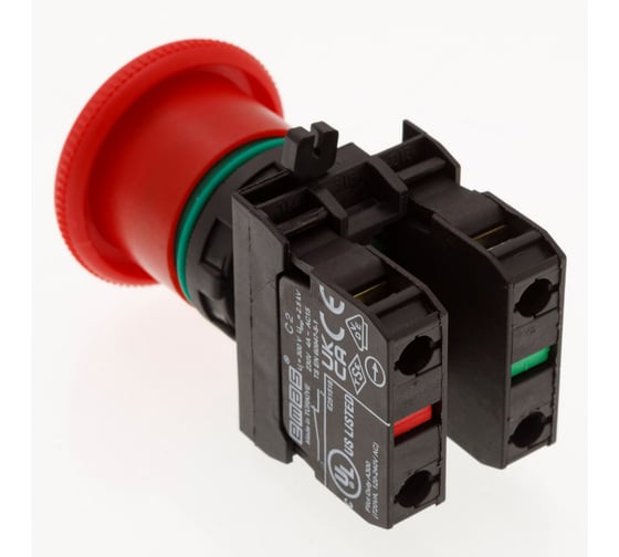 Кнопка аварийная EMAS Грибок 40мм (1НО+1НЗ), возврат отжатием, серия CP (250В AC, 4А), IP65 CP102EC