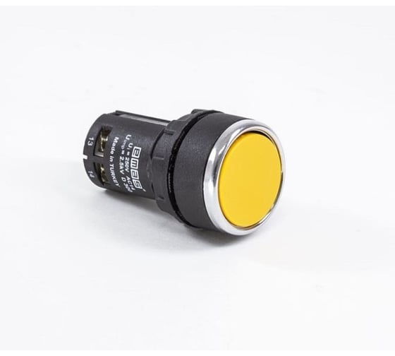Кнопка моноблочная Emas (1НО+1НО), жёлтый цвет, серия MB (240В, 0,3А), IP50 MB101DS