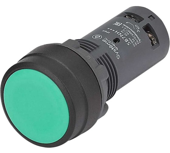Кнопка моноблочная Systeme Electric SB7 22мм зеленая с фиксацией, пластик, 2НО, IP65 SB7NH33