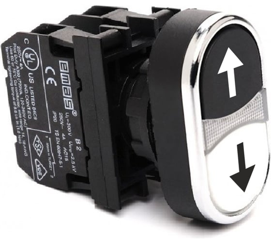 Кнопка сдвоенная EMAS (1НО+1НО), чёрный + белый цвет, с маркировкой, серия B (250В AC, 4А), IP50 B101K20HBOK