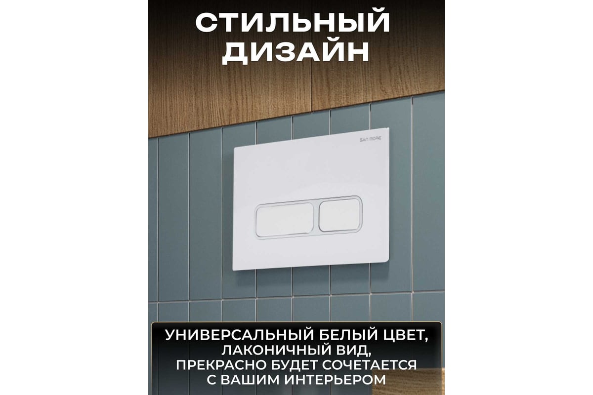 Элегантный цвет: белый цвет кнопки смыва придаст вашей ванной комнате неповторимый и современный вид, создав при этом изысканный акцент.