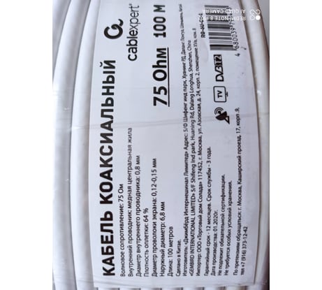 Отзывы о коаксиальном кабеле Cablexpert 75 Ом, 64%, 08мм, 100м, медь, белый RG-6U-CU-1