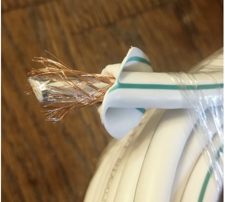 Центральная жила из меди толщиной примерно 1,1мм, паяется отлично. Двойной экран из алюминиевой фольги и омедненной алюминиевой оплетки. Хорошее качество передачи сигнала.