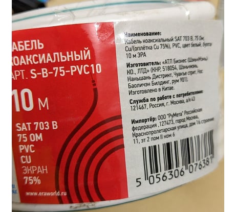 Отзывы о коаксиальном кабеле ЭРА SAT 703 B, 75 Ом, Cu/(оплётка Cu 75), PVC, цвет белый, бухта 10 м Б0044613