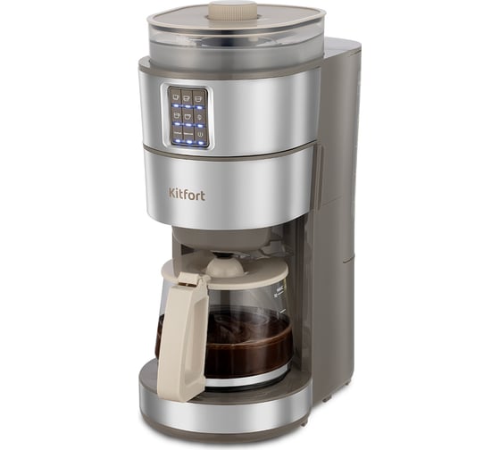 Кофемашина КТ-7204 готовит ароматный черный кофе по принципу капельной кофеварки. Встроенная кофемолка автоматически измельчит кофейные зерна. Также в кофемашину можно засыпать уже молотый кофе.