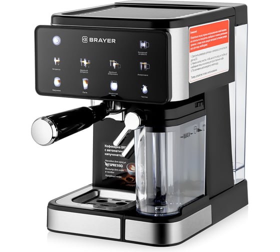 Кофеварка BRAYER 1147BR 1350 Вт, 20 бар, резерв 1,5л, резер.д.молока 0,5 л, сенср, чалды, капсулы BR1147