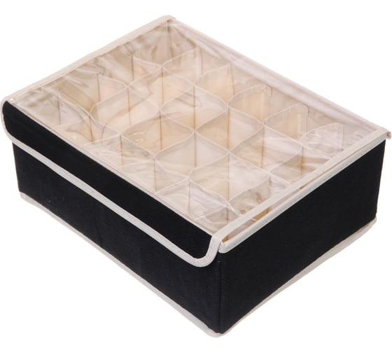 Кофр - органайзер для хранения вещей с прозрачной крышкой Селфи УЮТДОМА, цвет черный, 24 отделения, 32*24*12см 834-340