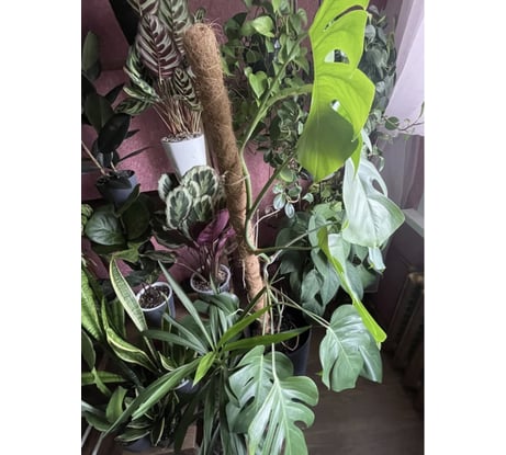 Хорошие опоры, намотка не сильно тугая, где-то густо где-то пусто, нужно вручную распрелелять. Серцевина труба из пластика, достаточно крепкая. Длина как и заявлено, блала для гиганской монстеры, держит идеально.