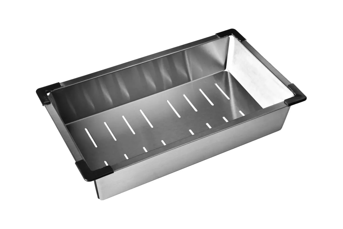 Коландер из нержавеющей стали WISENT 410x210 W30410 - это незаменимый аксессуар, который позволяет более рационально использовать пространство кухонной мойки. Он размещается в чаше и позволяет размораживать продукты или сушить посуду после мытья.