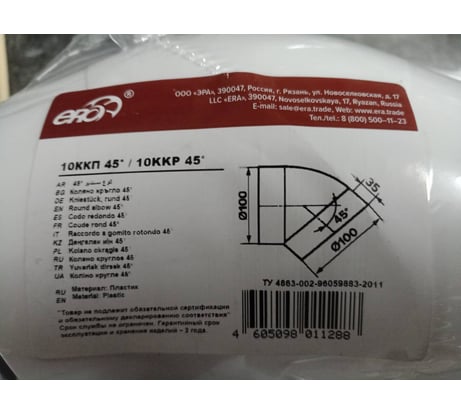 Вопросы и ответы о круглом колене ERA пластик D100 10ККП 488-050