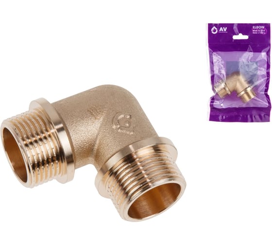 Угольник (колено) латунный 3/4" с наружной резьбой с ограничителем AV ENGINEERING (AVE307010) (1шт. в упаковке) предназначен для соединения элементов трубопровода.