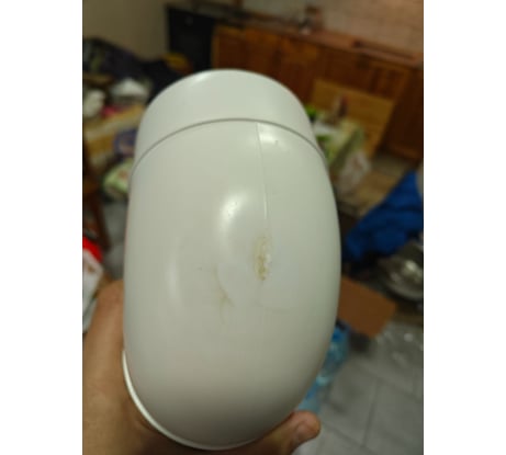 В принципе нормальные крепкие угловые колена, стыкуются хорошо. Но есть одно "НО" и оно на фото, наверное брак производственный. Конечно если их монтировать таким образом, чтобы этого пятна и изгиба было не видно, то нормально. Но у меня получилось оно на самом видном месте, и кажется как будто это грязь. Пытался счистить нождачкой, но увы, это в самой пластмассе. И я брал два колена и на обоих всё одинаково. На фото это после нождачки.
