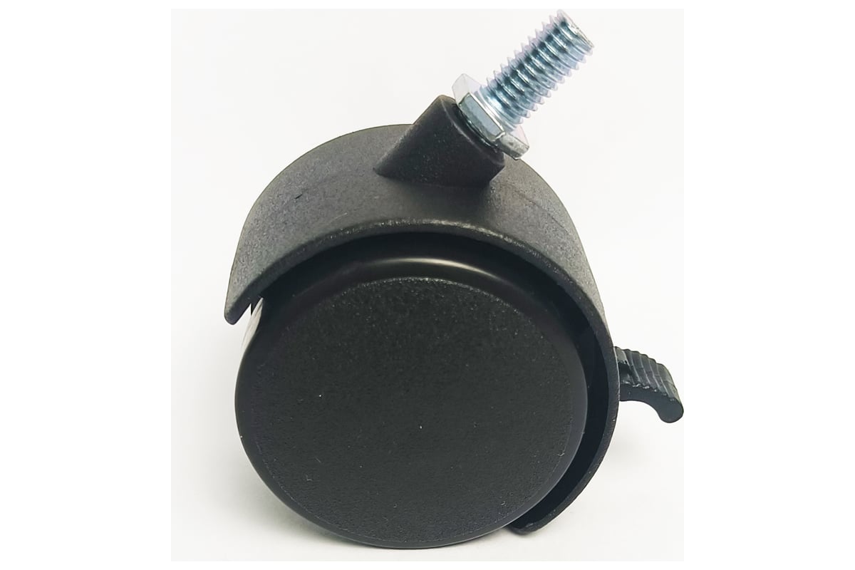 Колесная опора диаметром 50 мм чаще всего используют при изготовлении различных тумбочек, столов, кресел, передвижных стеллажей. Размер резьбы 15 мм. В комплекте 1 опора. Крепление двухколесной опоры осуществляется следующим способом - в дно тумбочки устанавливается либо забивная муфта с резьбой, либо втулка, куда и вворачивается колесо на штыре.