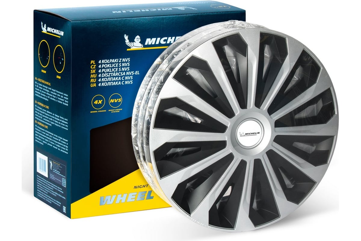 Колесные колпаки MICHELIN 13", "Космо", цвет: серебристо-черный, 4 шт. 300269
