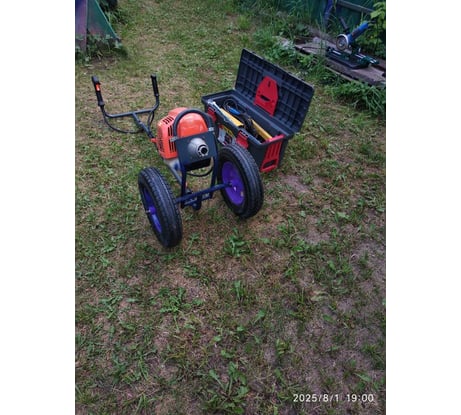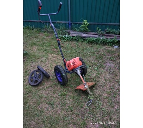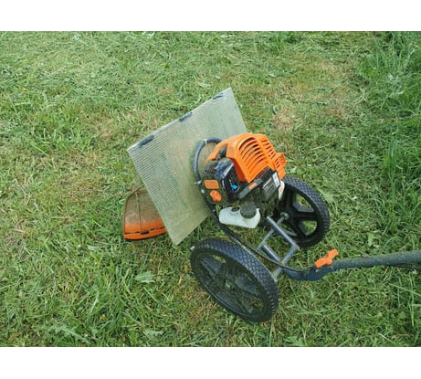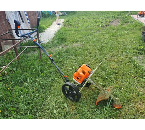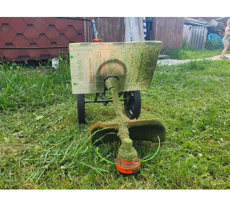 Косилка хороша, точнее задумка, а вот исполнение не очень продуманно. Точно не знаю, как именно конструкторы предполагали ее использование, если для кошение невысокой травы между грядок, то, наверное, конструкция выдержит, если для работы по площадям, да еще и с высокой травой, то тут начнутся проблемы. Первая - это конструкция, точнее крепление рукоядки к раме, которое от нагрузки врется. Вторая - это оснастка, точнее ее отсутствие.