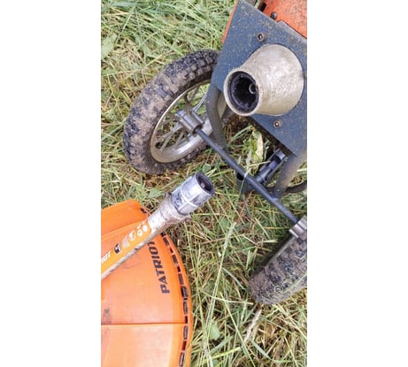 Итак, первая проблема решается при помощи сварки и листового металла, если вы хотите косить, а не использовать косилку как вентилятор, то рекомендую заранее усилить это место и забыть об этой проблеме, каталожный номер детали, конечно, есть 005511858, но в наличии ее нет. Вторая проблема - это оснастка, ширина захвата лески 420мм., что хорошо, но хорошо работает она только по невысокой траве, при работе на высокой она очень быстро рвется, плюс она по мере работы стирается, и ширина захвата становится уже, т.е. лески еще много, но захват стал слишком узким, и нужно менять леску, соответственно расход ее увеличивается в разы, а если использовать диск, то ширина будет 250мм., что очень мало, ведь это хоть и триммер, но колесный, и использовать его нужно как колесную косилку, а косит полосками по 250мм.- это очень не очень. Использовать катушку с непрерывной подачей лески тоже не особо выход, в высокой траве ее точно так же обрывает и она уже не выходит автоматически. У патриота есть нож 305мм(Код товара: 15082984).