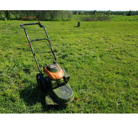 купили на большой участок 30 соток, участок не ровный, косить не удобно, толкать нужно всей силой, траву то косит, то кладёт на землю регулировали по разному никак не выходит, в итоге купили бензиновую мотокосу, а этот стоит без дела. к сожалению производитель только потом понял, что его нужно делать самоходным и в 2024 году выпустил такую модель