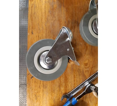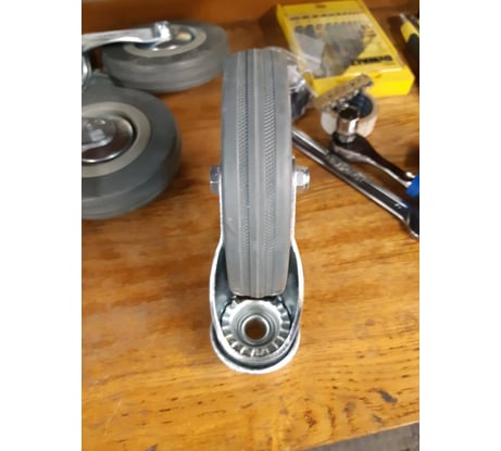 Колеса посредственного качества, но свою функцию выполняют. Подшипник только в вертикальной оси, а само колесо вращается пластиковым ободом по металлической втулке.