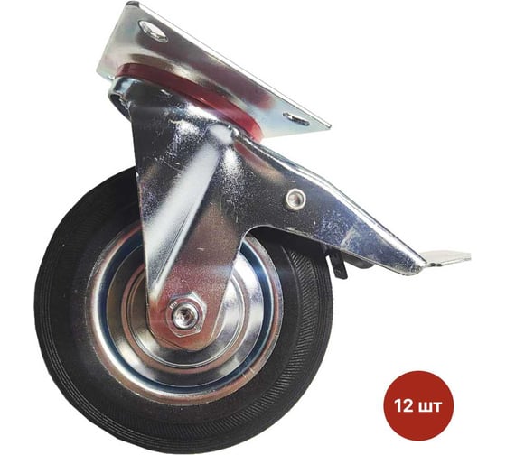 Колесо для строительных лесов поворотное SAMGRUPP с подшипником, с тормозом, 160 мм, 12 шт SAMC-027002160-12