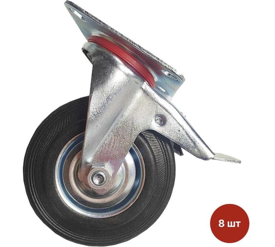Колесо для строительных лесов поворотное SAMGRUPP с подшипником с тормозом 200 мм 8 шт SAMC-027002200-8