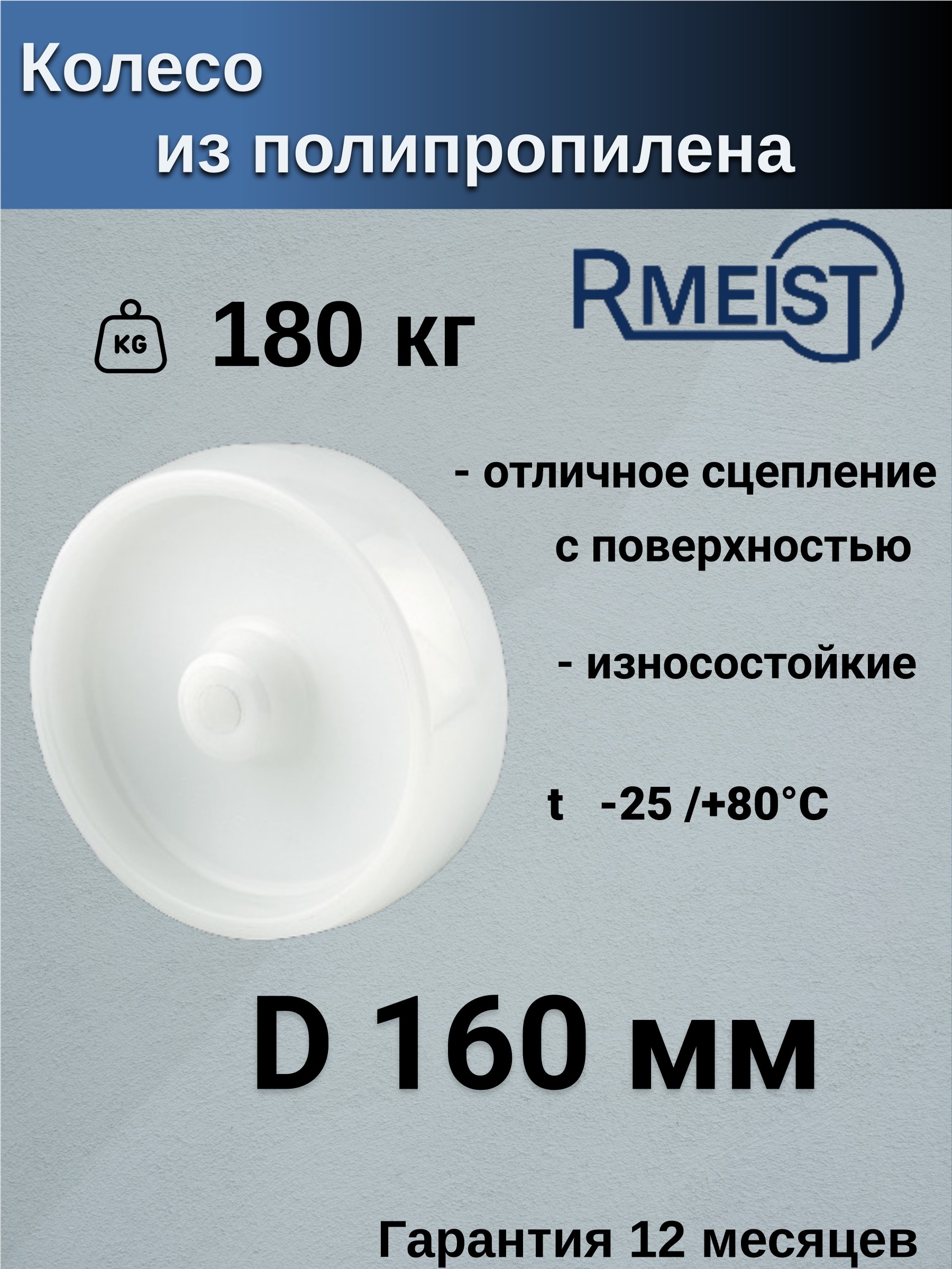 Колесо из полипропилена Rmeist 160х40-20, 160 мм, 1 шт. KOP160ВИ