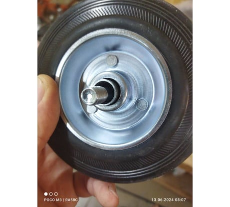В параметрах сплошное враньё. Подшипник — это только название: обойма пластиковая, смазка отсутствует. Втулка имеет люфт около 1 мм. Крепежный болт и защитные чашки не функциональны. Короче, Колесо полуфабрикат "сделай сам".