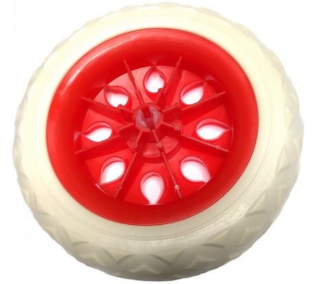 Примитивное в исполнении колесо, пластиковое основание и вспененный материал покрышки