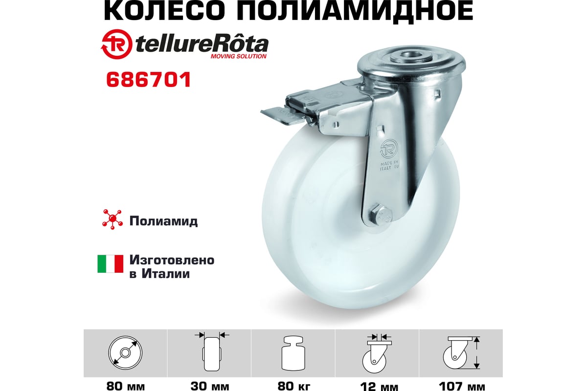 Вопросы и ответы о колесе Tellure rota с тормозом, подшипником скольжения 12 мм ; 180 кг; полиамид 686701
