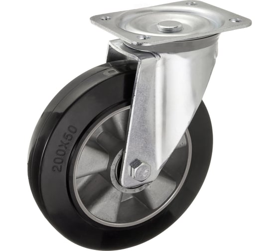 Колесо поворотное Стелла-техник диаметр 200мм, грузоподъемность 400кг, эластичная резина, алюминий, 7201-200