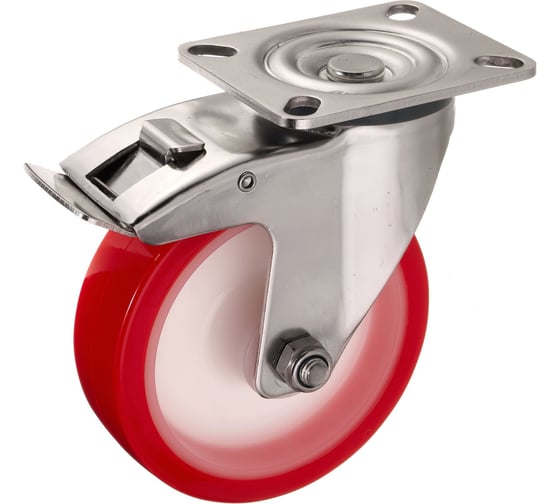 Колесо поворотное Стелла-техник с тормозом, диаметр 125мм, грузоподъемность 220кг, термопластичный полиуретан, полиамид, кронштейн из нержавеющей стали, 6903-125