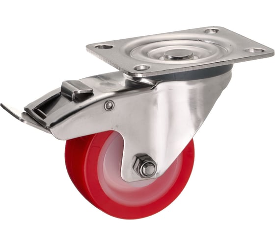 Колесо поворотное Стелла-техник с тормозом, диаметр 80мм, грузоподъемность 120кг, термопластичный полиуретан, полиамид, кронштейн из нержавеющей стали, 6903-80