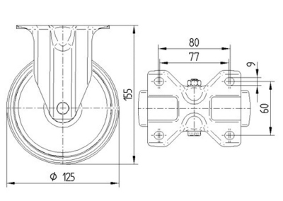 Колесная опора неповоротная, диаметр 125 мм. .